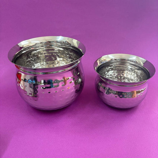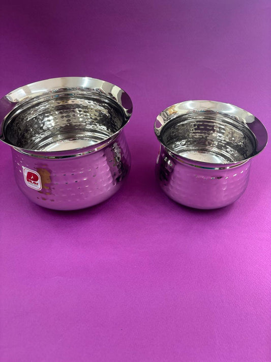 Pottu Gundu - Stainless Steel | Hammered Round Pot for Cooking & Serving