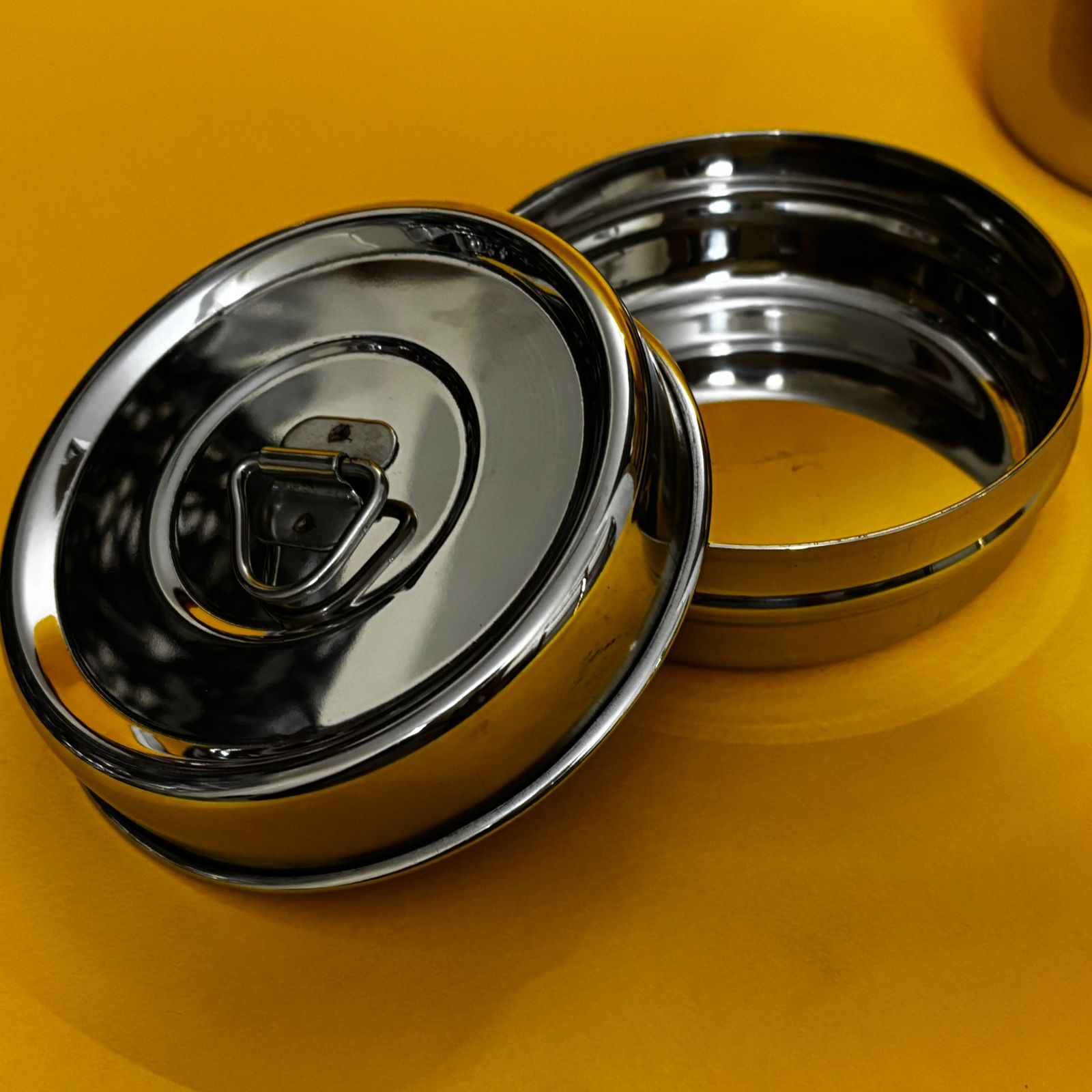 This big stainless steel tiffin box is the perfect companion for those on the go. Its durable material and large size make it perfect for carrying all your meals and snacks. Say goodbye to plastic containers and hello to a sustainable and stylish option. Bon appétit!